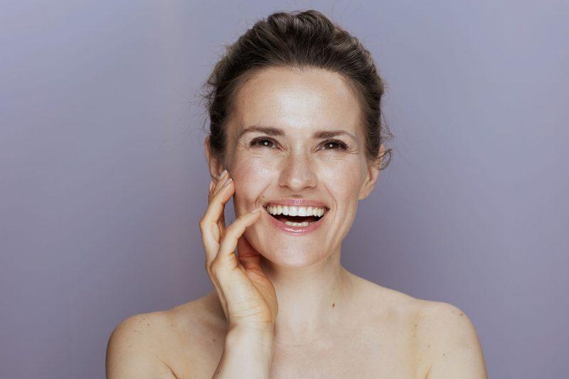 In your 40s, your skin starts reflecting the cumulative effects of aging. As your body approaches menopause, it produces less collagen and elastin than necessary. This leads to a gradual thinning of the skin’s layers as cells shrink, accompanied by a decrease in new cell production. Consequently, the skin becomes rough and dry, contributing to the formation of wrinkles and the deepening of fine lines.